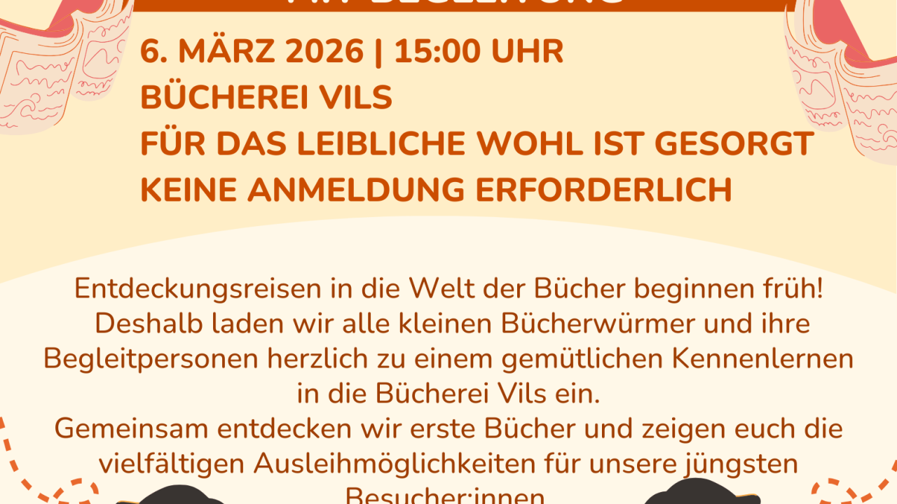 Deshalb laden wir alle kleinen Bücherwürmer und ihre Begleitpersonen herzlich zu einem gemütlichen Kennenlernen in die Bücherei Vils ein.